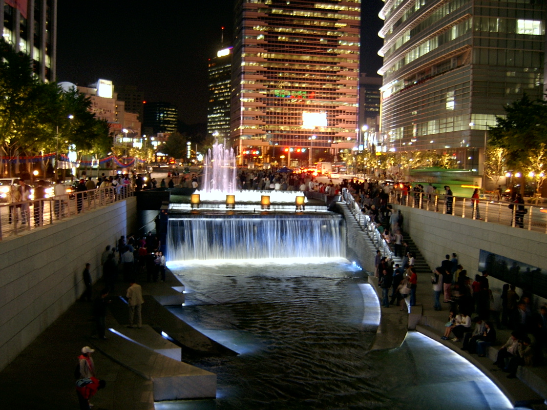특히 청계천 중앙 구간에는 물 위에 떠 있는 용 모양의 조형물이 가장 인기가 많았습니다.