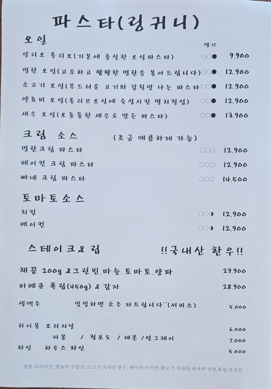 메뉴는 파스타, 스테이크, 블랙퍼스트, 샐러드, 버거 등등 많은 메뉴가 있습니다.