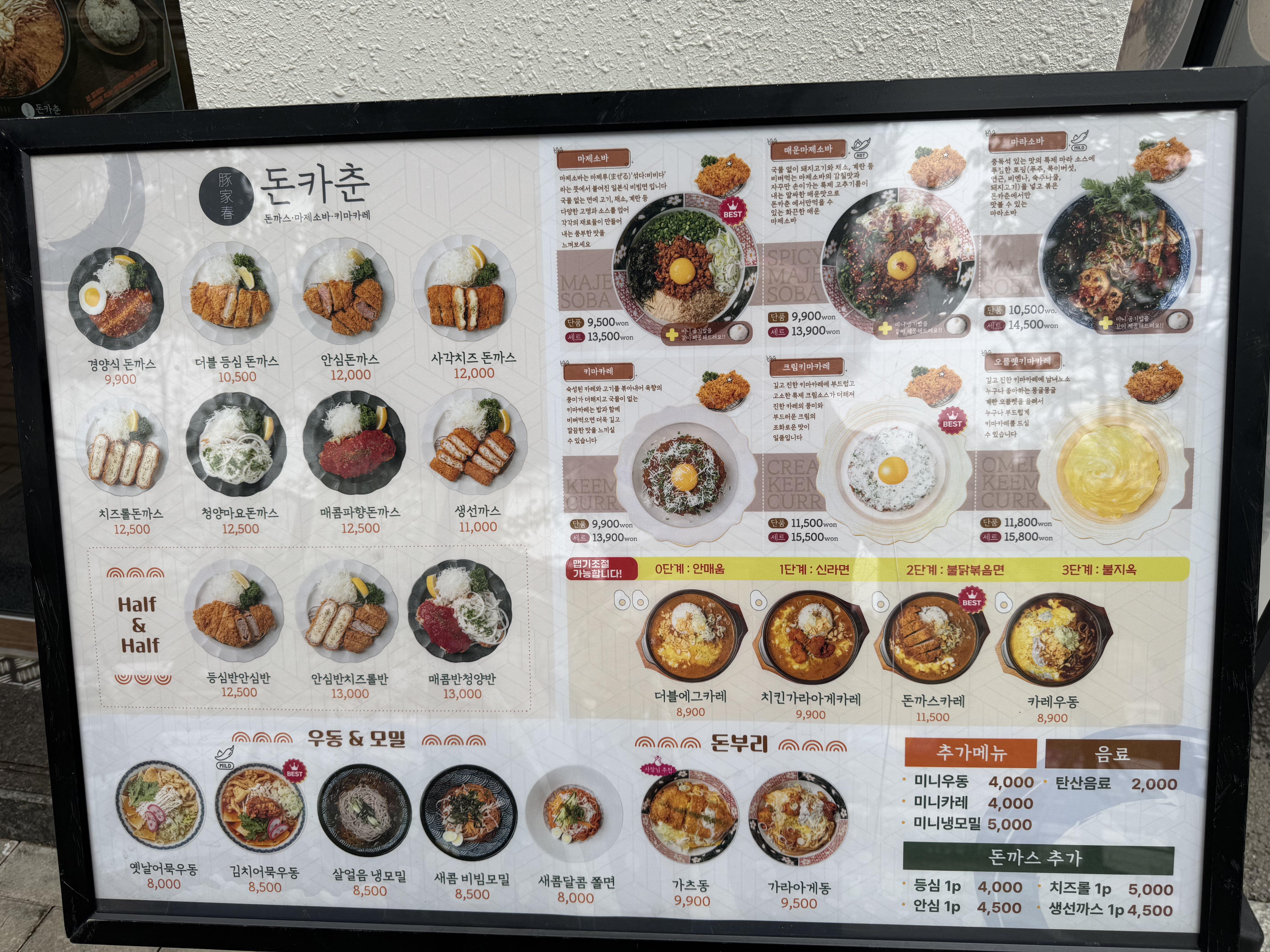 돈카춘은 메뉴 구성이 정말 다양했어요. 대표적으로는 아래와 같습니다.