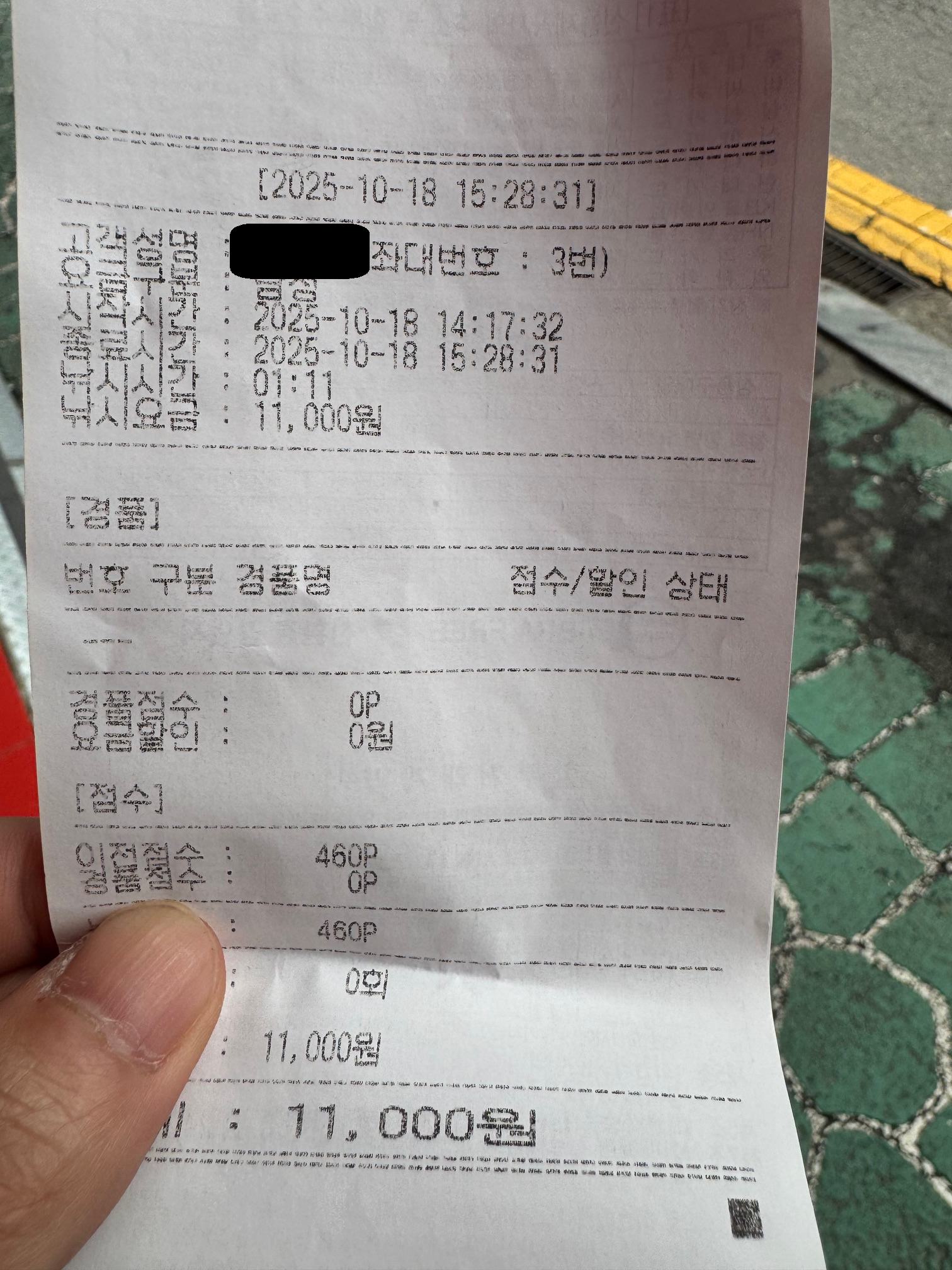 낚시를 마무리하고 번호키를 드리면, 이렇게 점수는 몇 점이였는지, 몇 마리 잡았는지 간이 영수증을 주시고, 이걸로 계산하시면 됩니다.