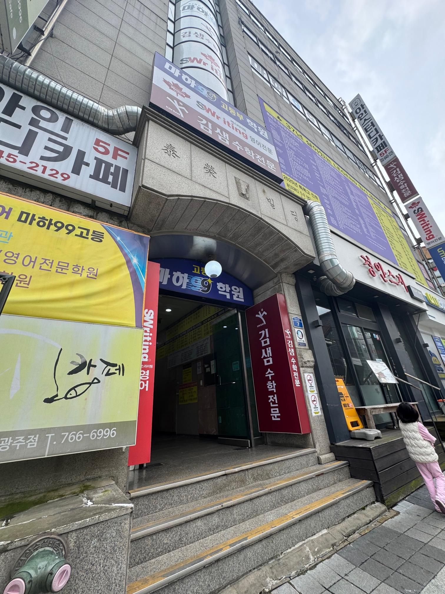 학원이 있는 빌딩이고, 건물에서 엘리베이터를 타고 지하1층으로 간 다음에, 계단으로 한번 더 내려가야 합니다.